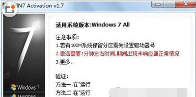 运行WIN7Activation后,点击软件主界面上的“激活”,进入激活状态