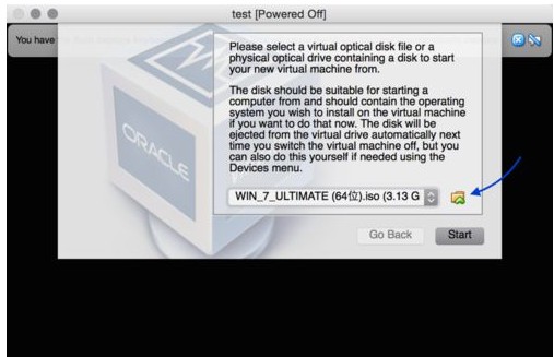 这个文件一会儿我们会在虚拟机上安装 Windows 7 时要用到。在虚拟机窗口中,点击底部的“光盘”图标