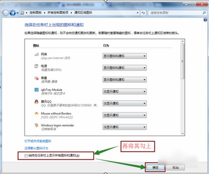 然后再返回下图所示这个页面,再把刚才取消的那选项再勾上,然后点确定。