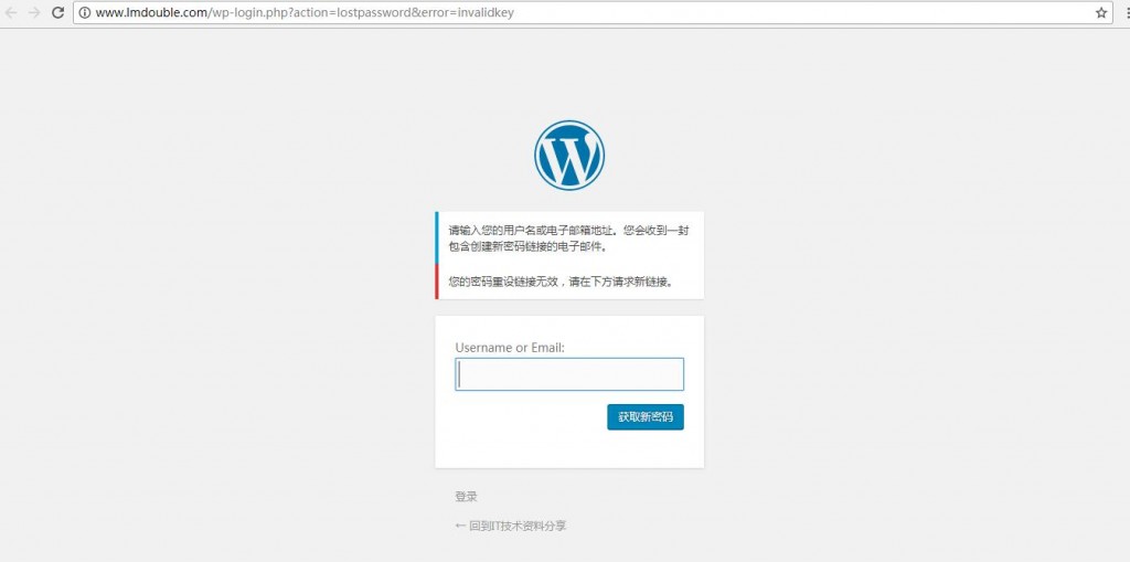 wordpress找回密码重置链接提示您的密码重设链接无效,请在下方请求新链接 如何解决